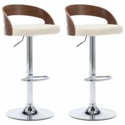 Das Set mit 2 Barstühlen bietet ein ordentliches und dennoch zeitloses Design und bietet Ihnen mit Sicherheit höchsten Sitzkomfort. Die Stühle sind mit leicht zu reinigendem Kunstleder bezogen, um optimalen Komfort zu bieten. Der gebogene Holzrahmen sorgt für einzigartige Schönheit und Stil. Die verchromte Metallbasis bietet hohe Robustheit, während die eingebaute Fußstütze zusätzlichen Sitzgenuss bietet. Das ergonomische Design macht es sehr bequem, stundenlang auf den Stühlen zu sitzen. Dank des Gasliftmechanismus können diese Barstühle in der Höhe verstellt werden und sind eine perfekte Ergänzung für jede funktionale Bar oder jeden Essbereich. Lieferung umfasst 2 Barstühle.