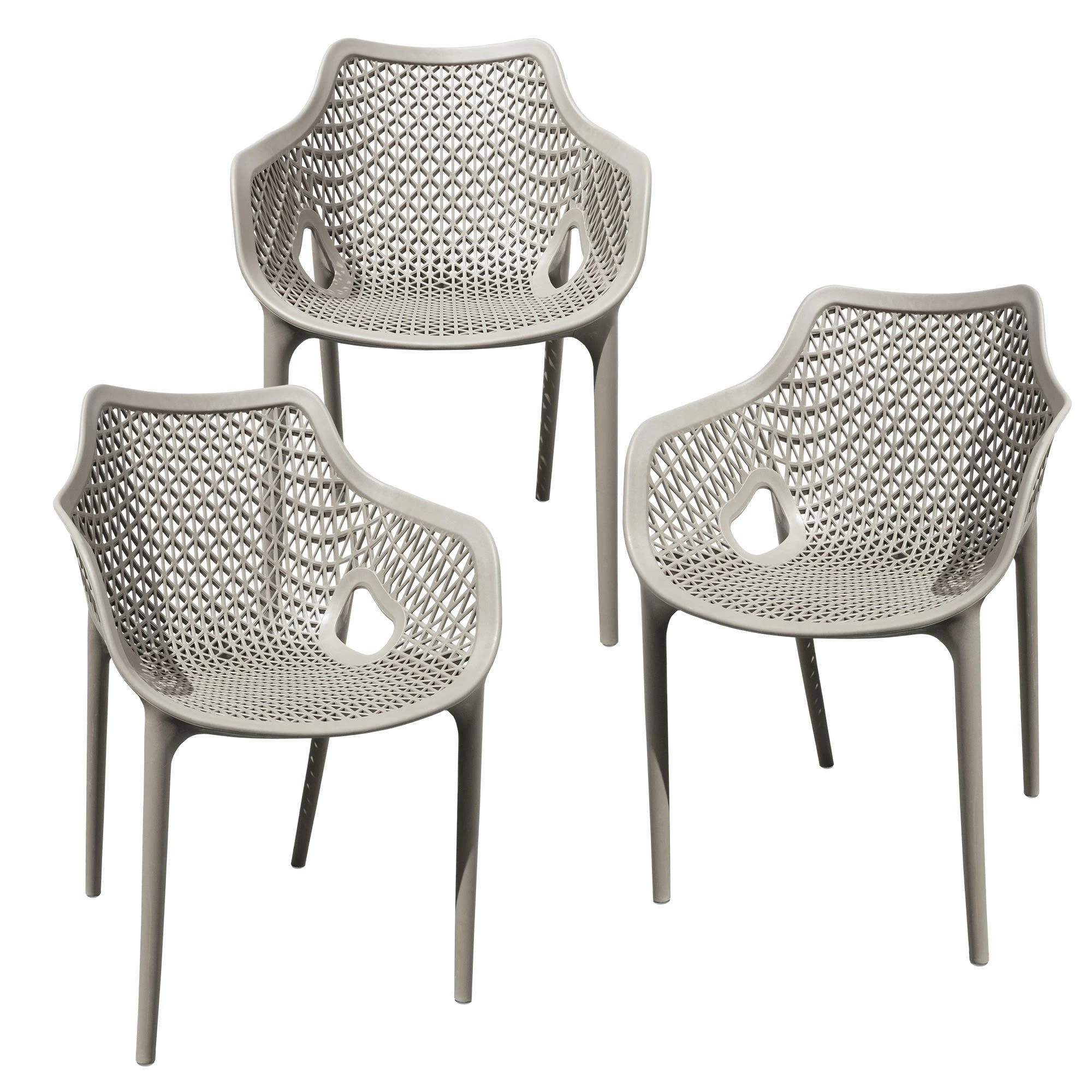 Null Gartensessel Gartenstuhl Kunststoff Stapelstuhl Armlehne Küchenstuhl Bistrostuhl 3 St. Taupe