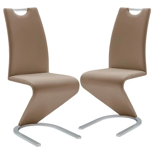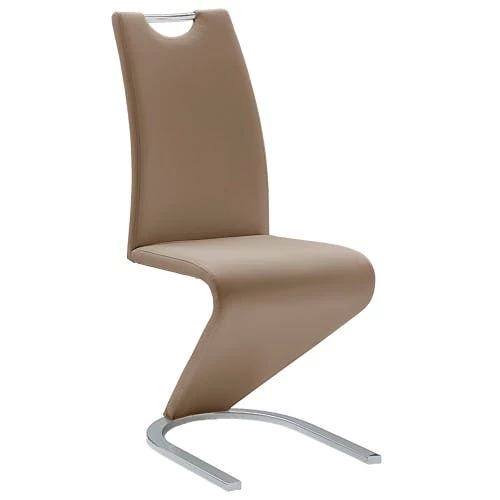 DESIGN & HAPTIK: Raburg 2er-Set Esszimmerstuhl AMADO, stylishes & modernes Design in CAPPUCCINO, Kunstleder, Gestell in CHROME, extravagante Linienführung, stabiles Gestell aus massivem Metall