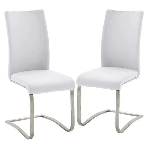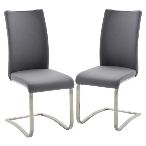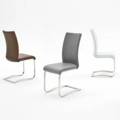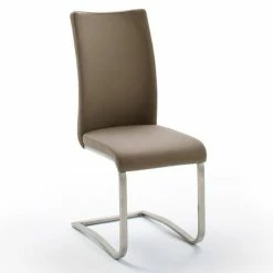 Raburg 2er-Set Esszimmerstuhl ARCO in CAPPUCCINO, Echtleder, Gestell SILBER, gepolsterte Freischwinger, Flachrohr Edelstahl gebürstet, edler Lederbezug, belastbar bis 130 kg