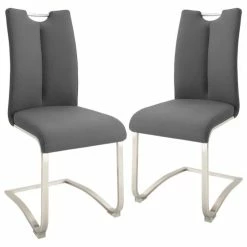 Raburg 2er-Set Esszimmerstuhl ARTOS XL in ANTHRAZIT, Feingewebe, Gestell in SILBER, gepolsterte Freischwinger mit Griff, belastbar bis 140 kg