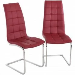 Lieferumfang: 2 x Raburg Esszimmerstühle LEONARDO in ROSSO-ROT, Gestell in SEIDEN-SCHWARZ – gepolsterte, gesteppte Freischwinger aus Soft-Kunstleder