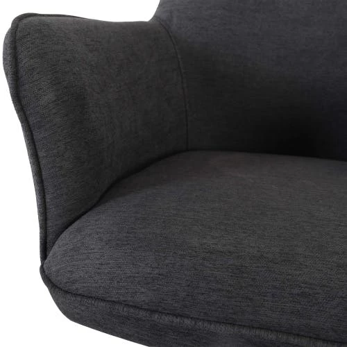 MATERIAL & FARBE: Weicher & pflegeleichter Stoffbezug in DUNKEL-GRAU-MELIERT, Metallgestell in SEIDEN-SCHWARZ, passt ideal in den Wohnbereich & zu vielen Tischen