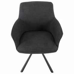 Raburg Esszimmerstuhl CARA, DUNKEL-GRAU-MELIERT, 180° Auto-Return, X-4-Fuß-Gestell, SEIDEN-SCHWARZ, moderner & edler Polsterstuhl, Sessel mit Armlehnen, extra weicher Stoff, 100% Polyester, belastbar bis 120 kg