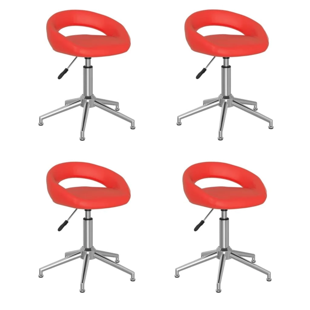 Mit ihrem stilvollen Design sind diese Esstisch-Drehstühle eine praktische und moderne Ergänzung für jeden Wohnraum. Gepolstert mit weichem Kunstleder, bieten diese Drehstühle optimalen Sitzkomfort. Das verchromte Stahlgestell sorgt für hohe Stabilität. Dank des Gasdruckmechanismus ist der Sitz in der Höhe verstellbar. Der Sitz kann um 360 Grad gedreht werden, was für große Flexibilität sorgt.
